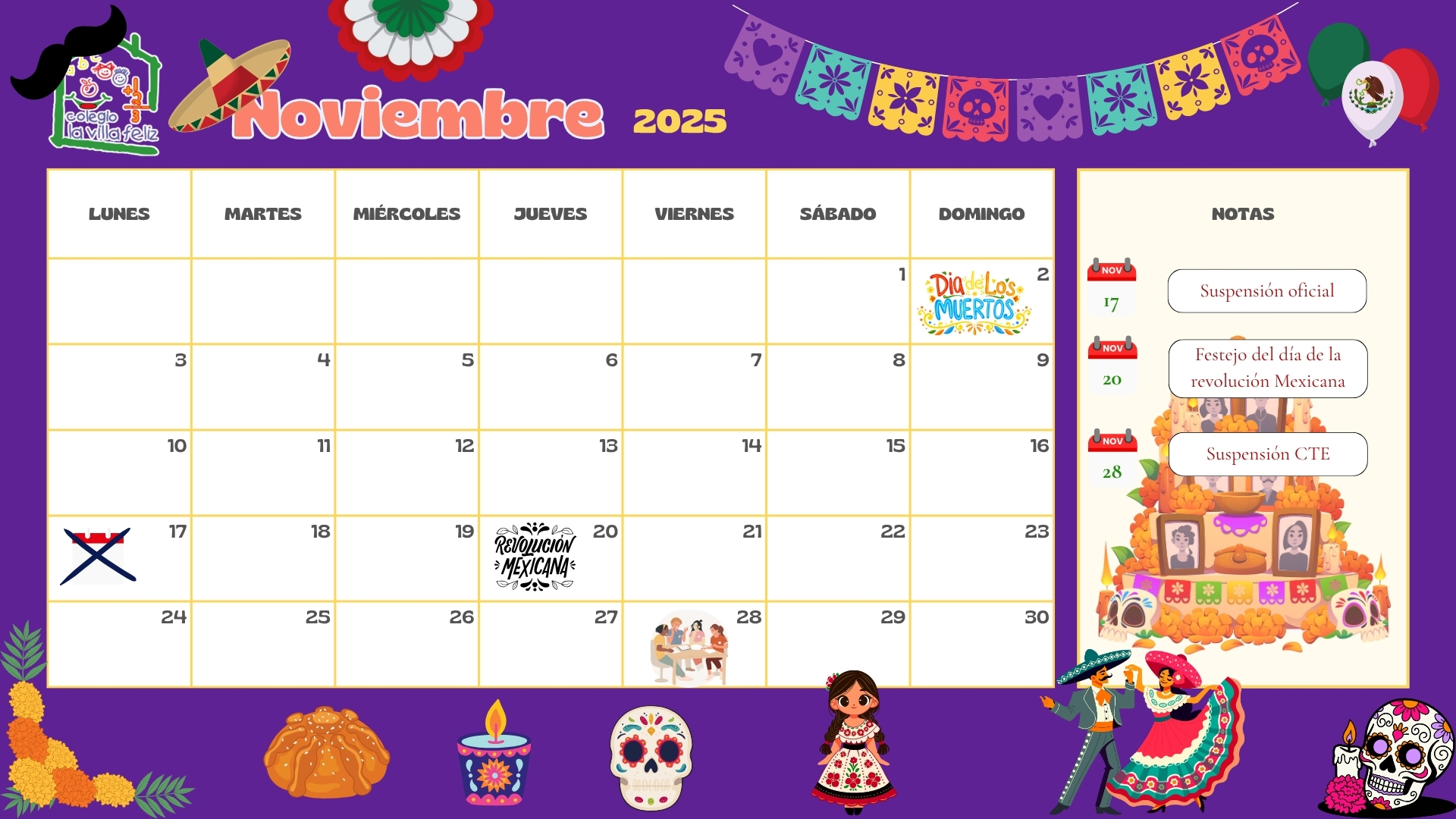 El pasado 3 de noviembre, en las instalaciones del Colegio La Villa, se llevó a cabo un acto cívico conmemorativo al mes de Noviembre, teniendo como fecha destacada el Día de Muertos, con el propósito de fortalecer en nuestros alumnos el respeto, la identidad nacional...