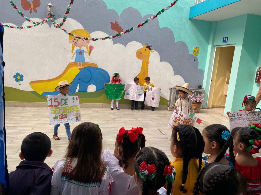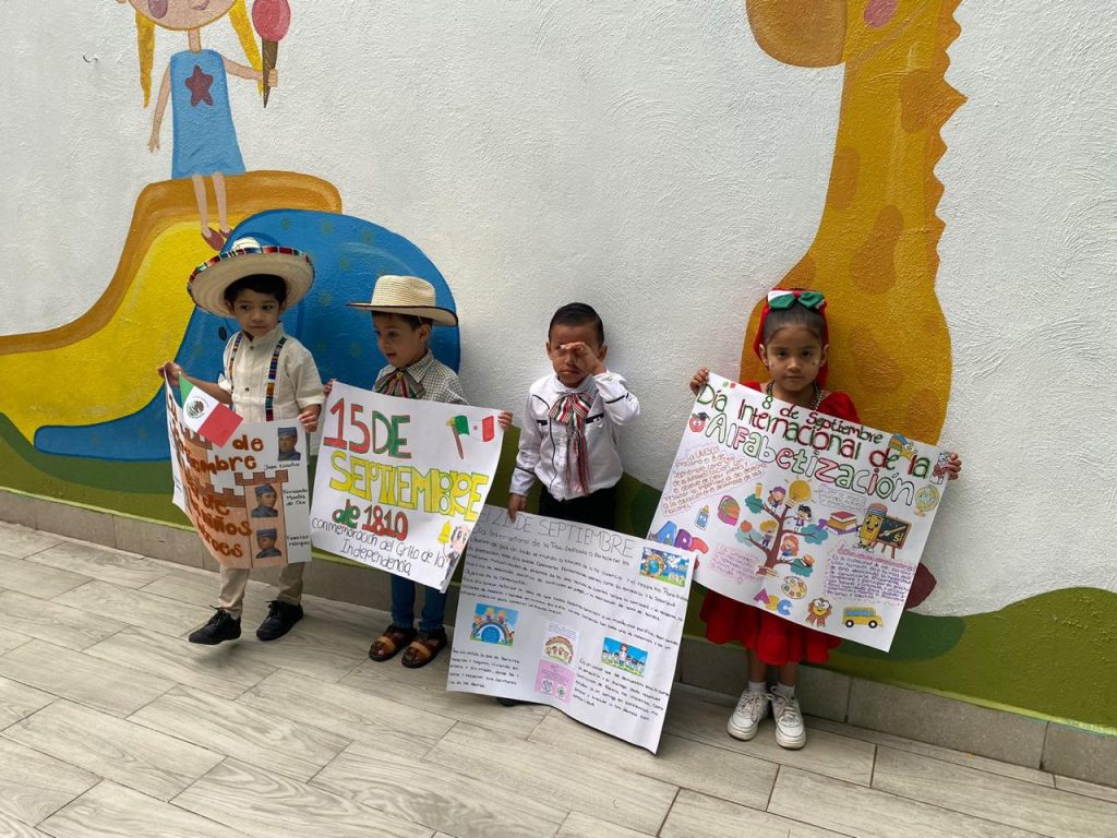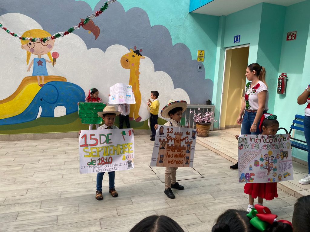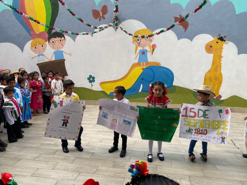 El día lunes 15 de septiembre se llevó a cabo en las instalaciones del colegio nuestro acto cívico correspondiente al mes de septiembre en donde nuestros peques ayudados por sus papás acudieron vestidos con ropa típica y su cartulina de alguna fecha importante celebrada en el mes de septiembre.