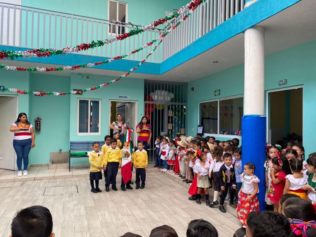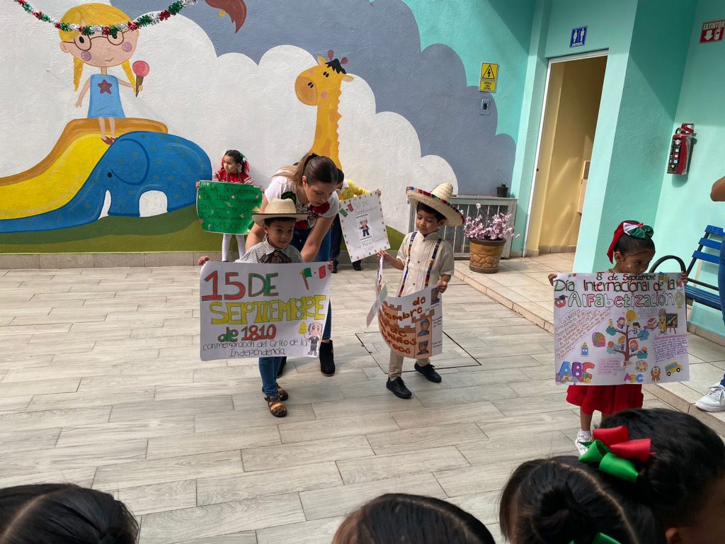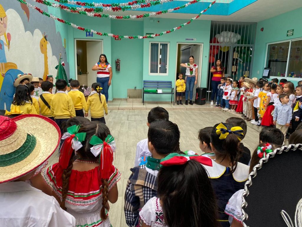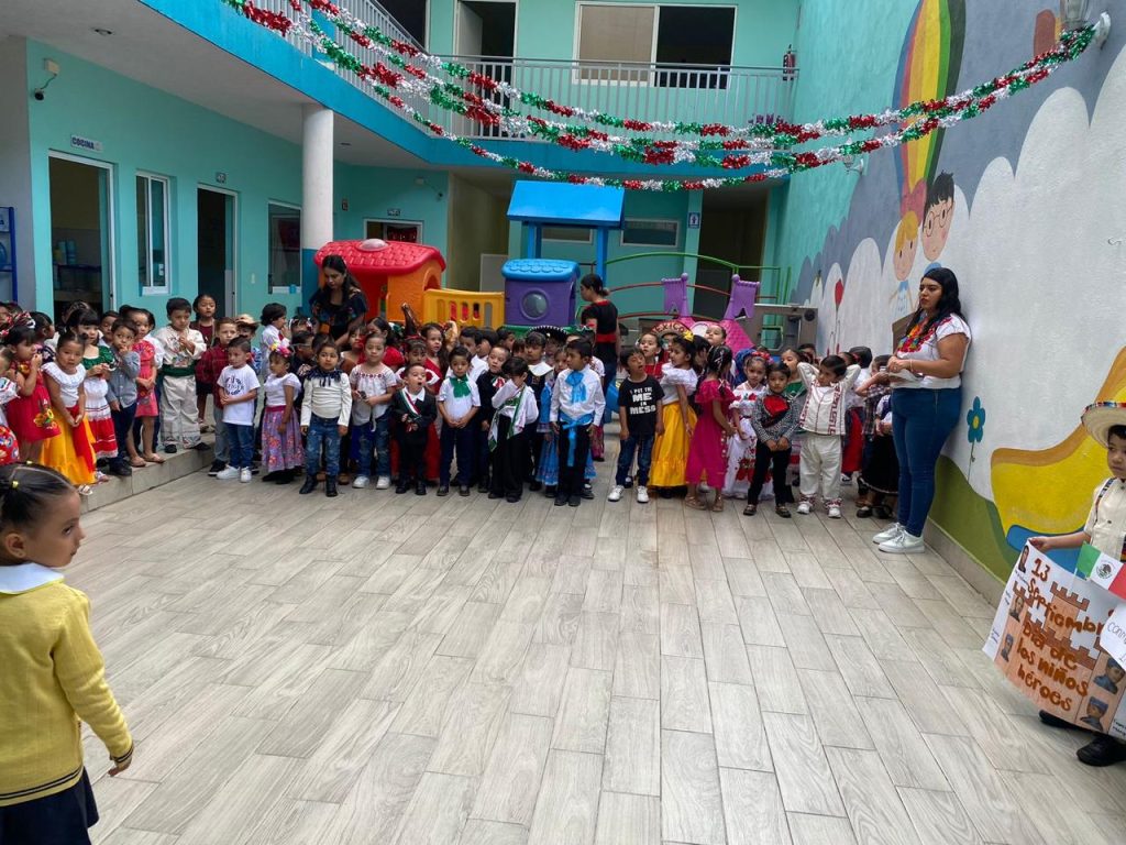 El día lunes 15 de septiembre se llevó a cabo en las instalaciones del colegio nuestro acto cívico correspondiente al mes de septiembre en donde nuestros peques ayudados por sus papás acudieron vestidos con ropa típica y su cartulina de alguna fecha importante celebrada en el mes de septiembre.
